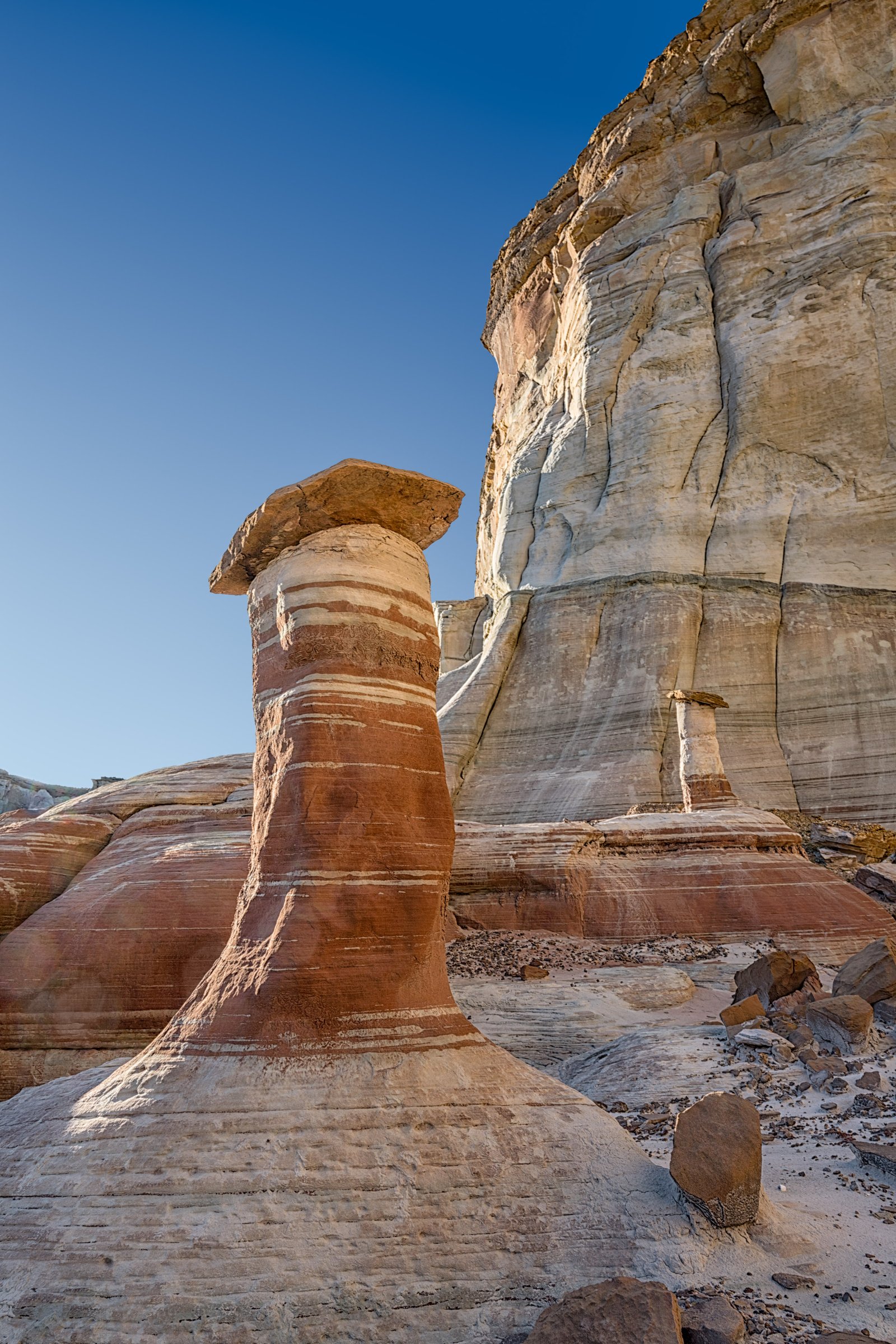 Dual Hoodoos Slanted Hoodoo in West Fork 2 West Fork of Wahweap Creek Swiss Cheese Reflected Reflected Light on Striped Hoddoo Slanted Hoodoo in West Fork Striped Hoodoo Striped Hoodoo Close-Up Exit from the West Fork of Wahweap Creek