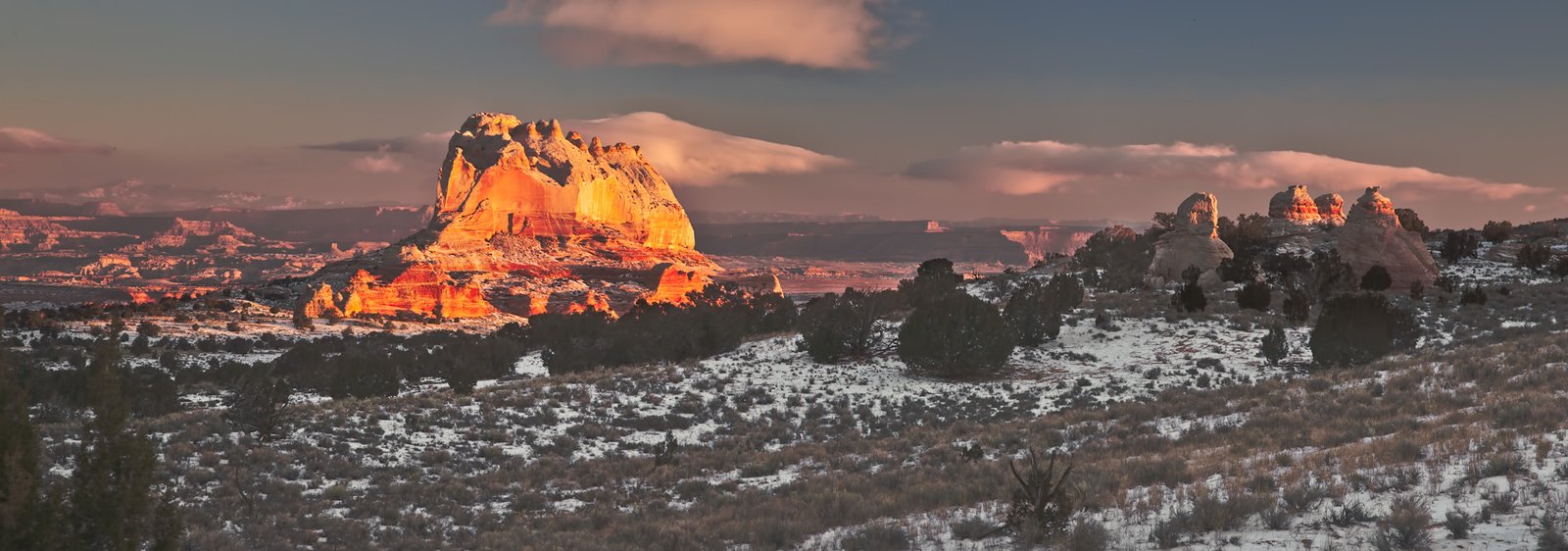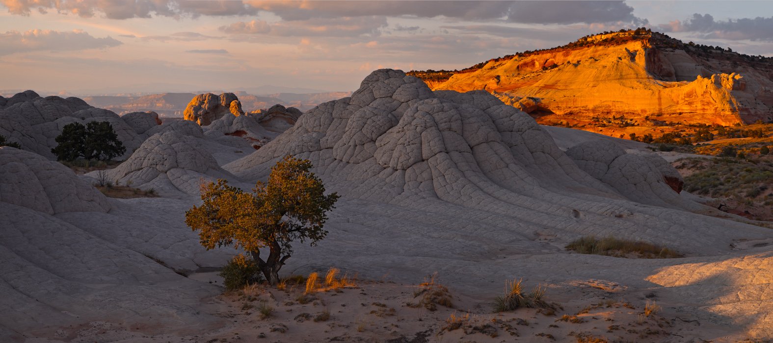 The cliffs to the east are nicely lit at sunset. The Second Tree is southwest of the often photographed tree that you see to your right when hiking into the White Pocket.